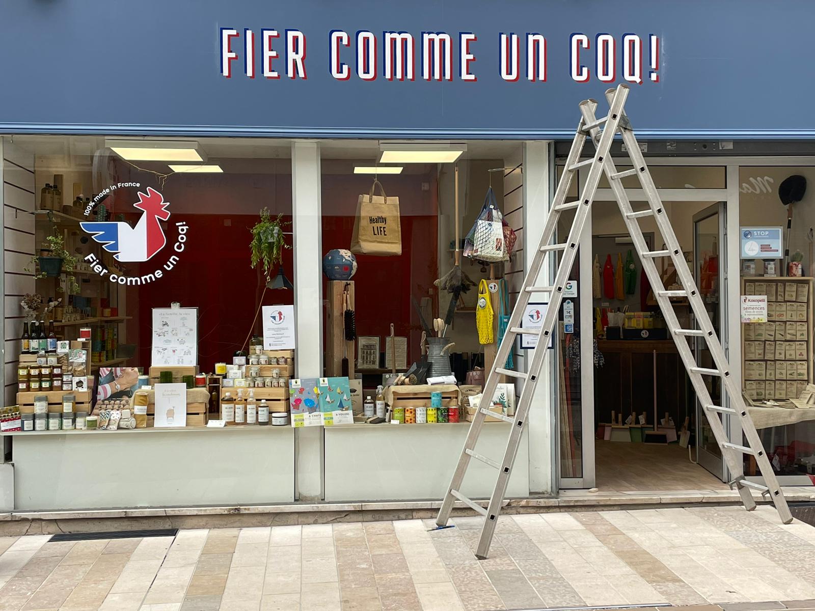 Fier comme un Coq! est une jeune boutique de produits Made in France installé depuis un an à Meaux. Ma mission a été d’améliorer la circulation à l’intérieur du magasin pour maximiser les surfaces de ventes et d’exposition tout en laissant le passage pour les personnes à mobilité réduite. Dessin et conception également d’une borne d’accueil adaptée à l’espace.
