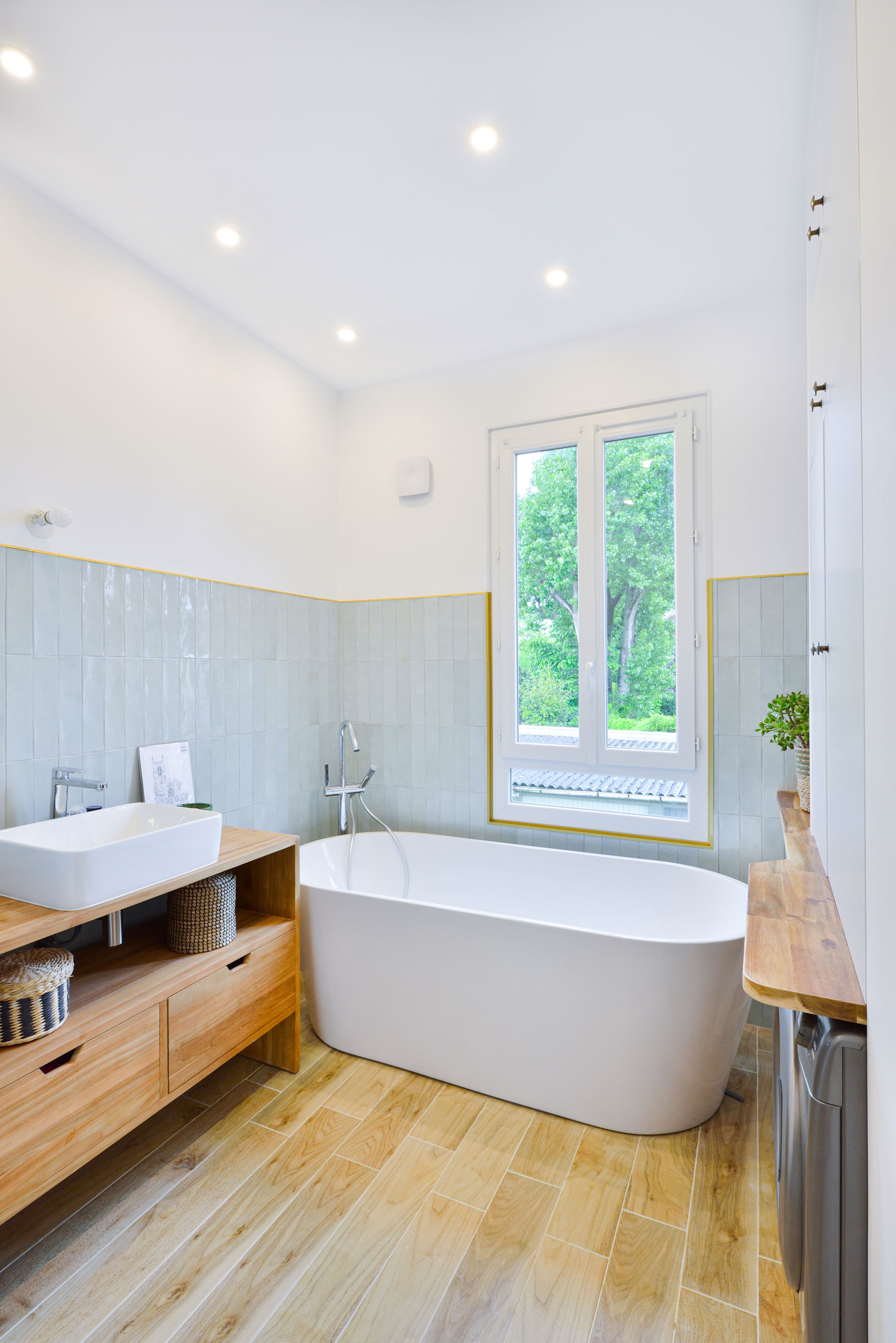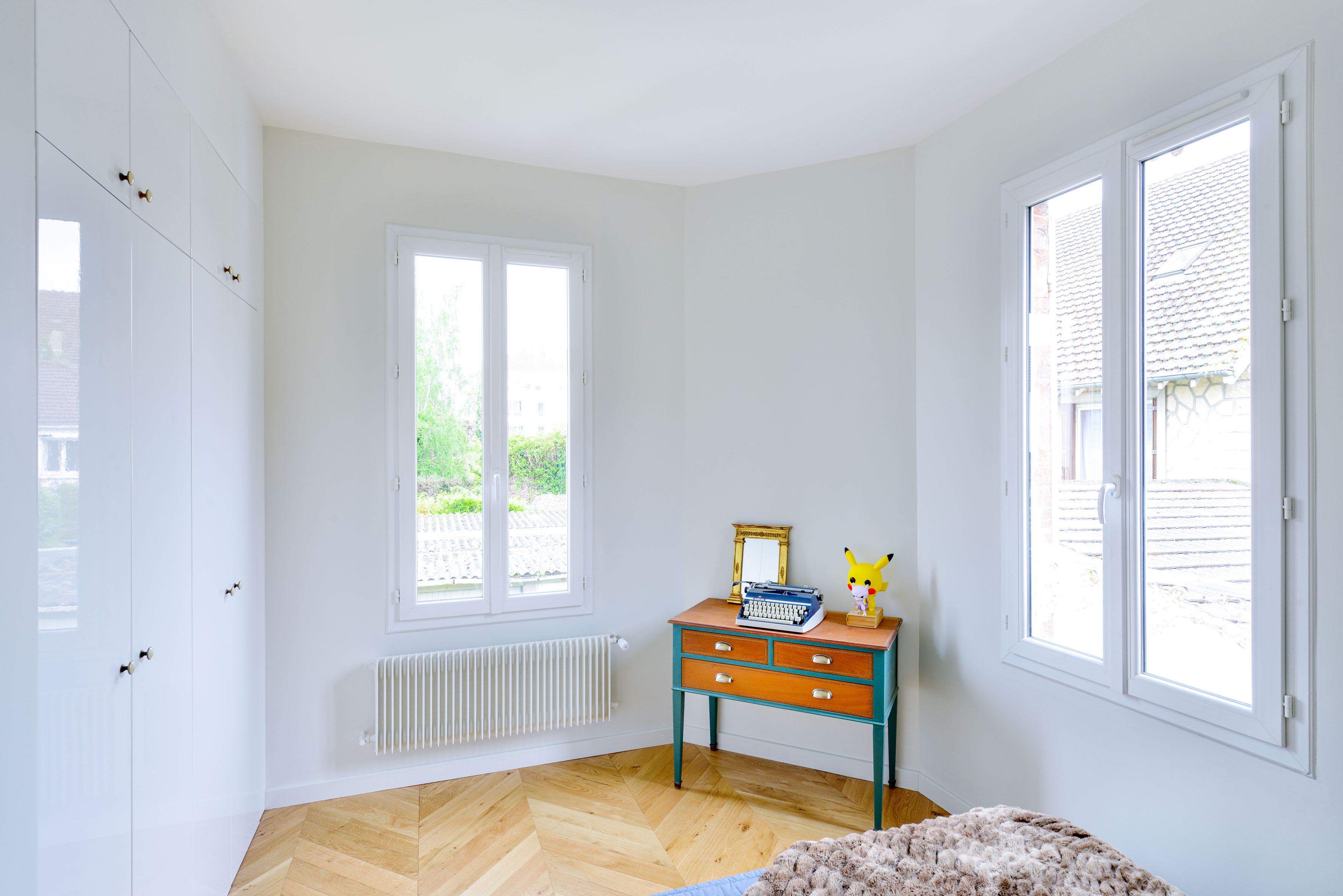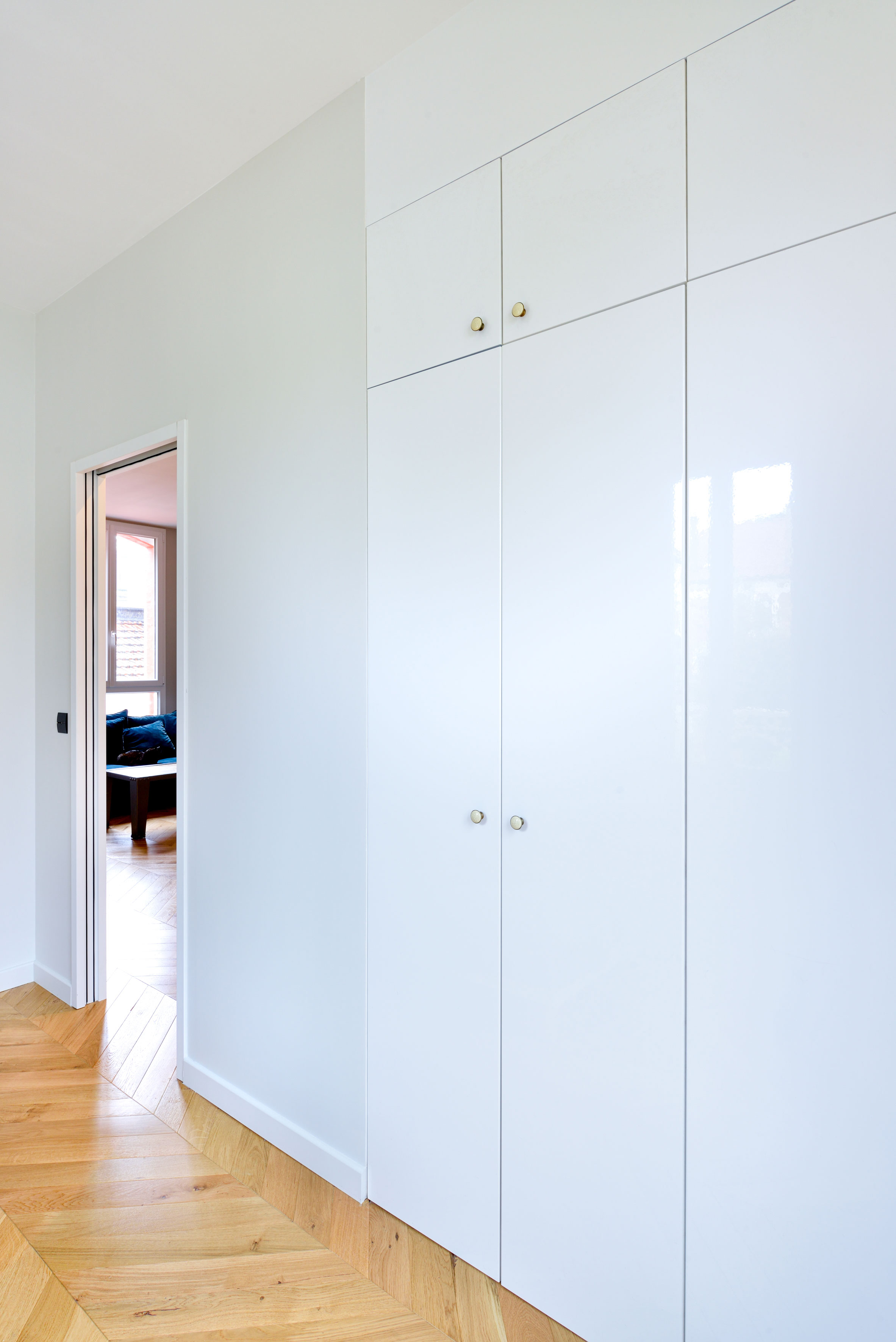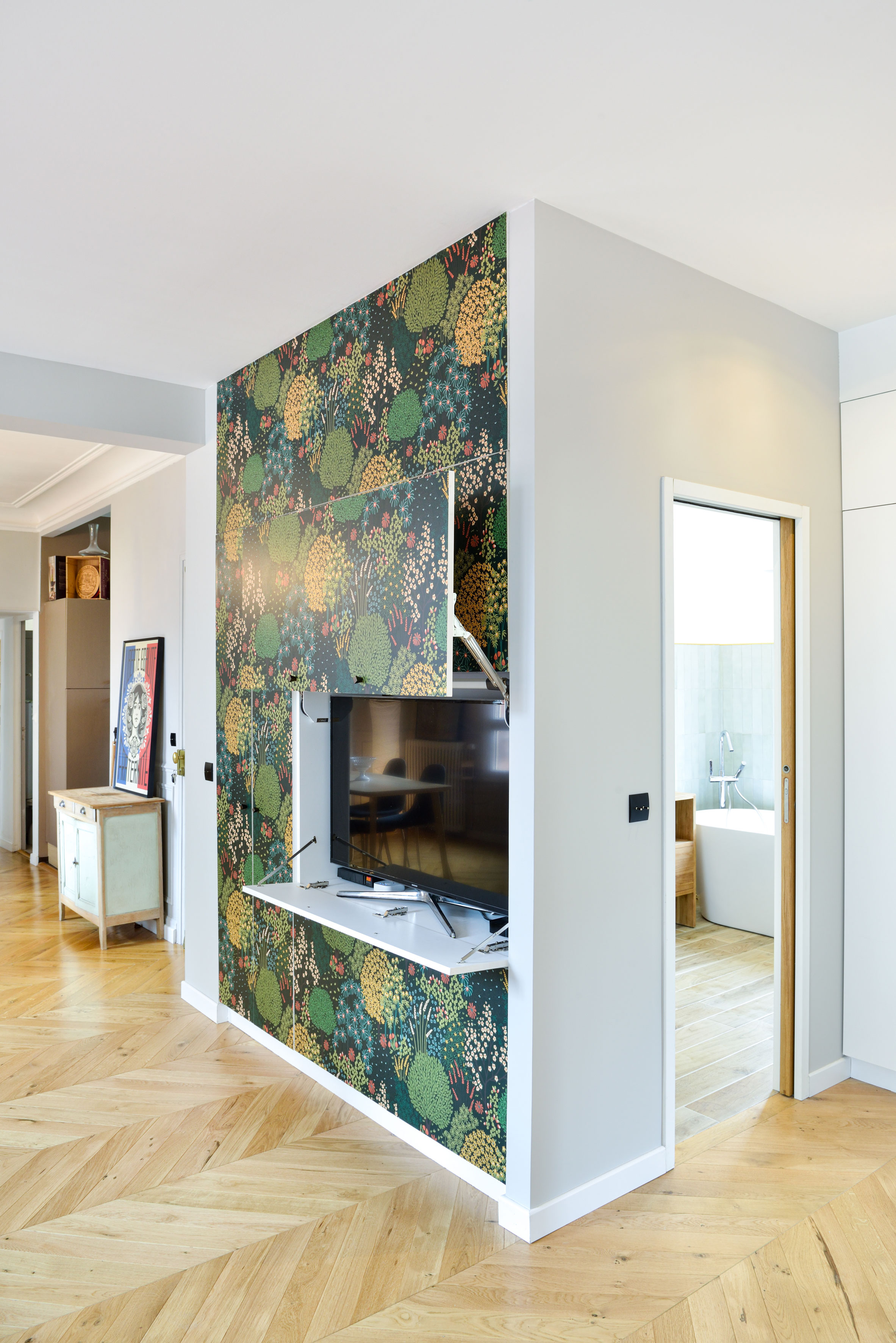 Arnaud et Arthur ont eu l’occasion d’acheter l’appartement voisin et ainsi de doubler leur surface d’habitation, d’ajouter une chambre d’amis avec salle de bain indépendante et d’ouvrir leur séjour sur une salle à manger et d’un grand espace de lecture.